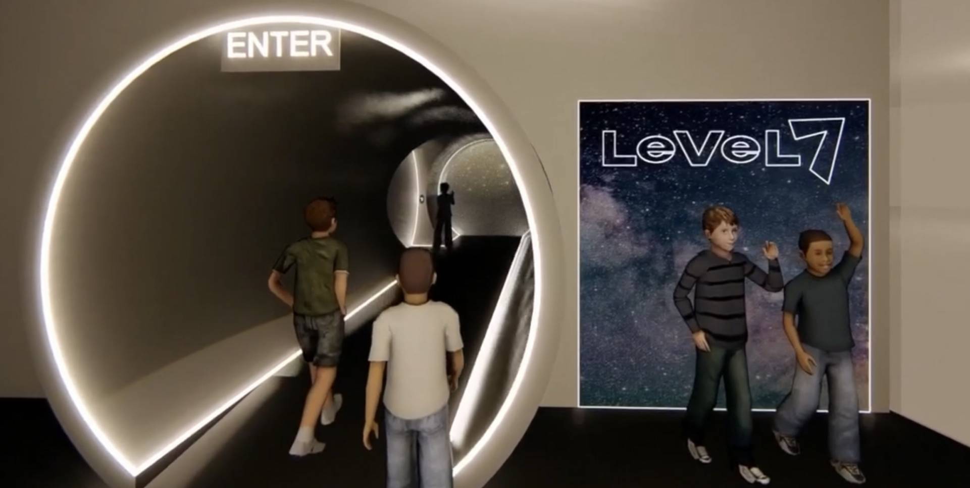 Level 7 is an immersive art experience focusing on family entertainment designed to transport visitors of all ages to a place of unforgettable wonder and discovery. LeveL 7 tells stories. Light, sound and texture, create a delightful experience that will challenge your perception of reality as you enter the limitlessness of Space. The themed interactive art invites you to become part of the story, in a place imagined and created by artists.